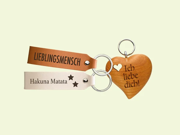 Im BIPA Onlineshop finden Sie den Schlüssel zum Herzen Ihrer Liebsten: Gestalten Sie Schlüsselanhänger aus natürlichen Materialien wie Holz und Leder, und versehen Sie diese mit Ihrer ganz persönlichen Botschaft. Besonders dekorativ sind auch die Schlüsselanhänger aus hellem oder dunklem Leder. Ganz einfach mit der kostenlosen BIPA Software gestalten und nach Hause schicken lassen.